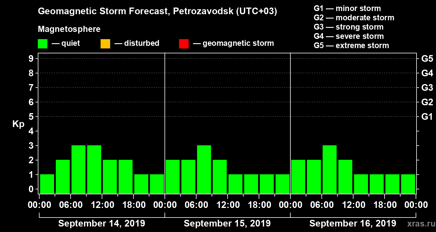 Geomagnetic storm forecast in Petrozavodsk for Sep 14, 2019