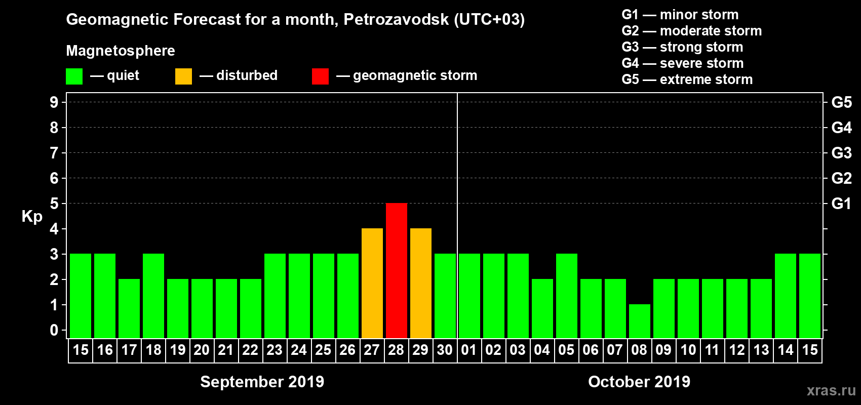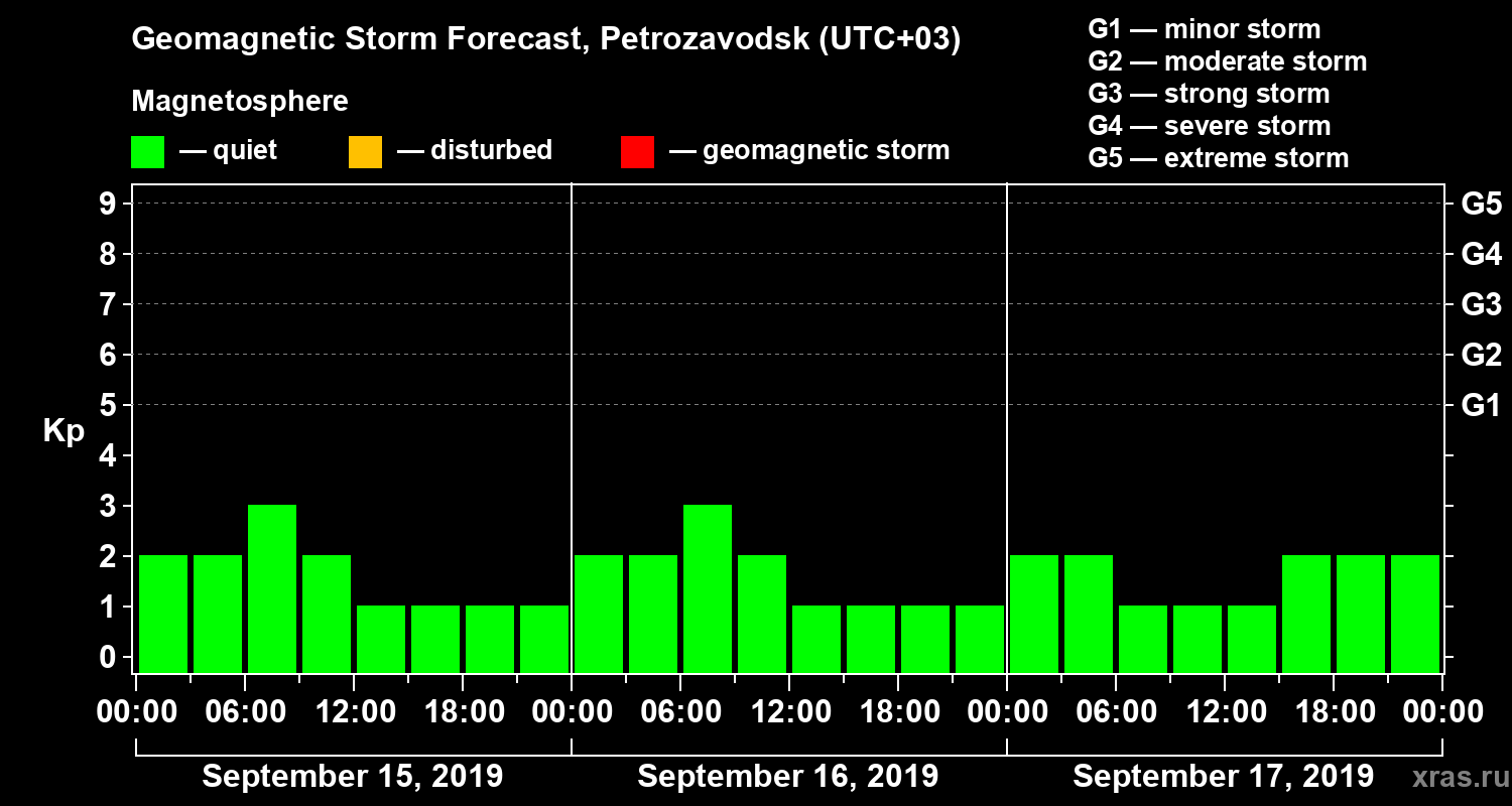 Geomagnetic storm forecast in Petrozavodsk for Sep 15, 2019