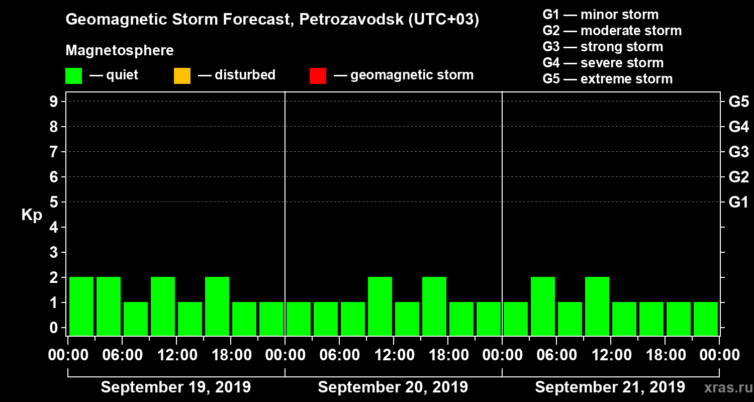 Geomagnetic activity forecast in Petrozavodsk — Sep 19, 2019