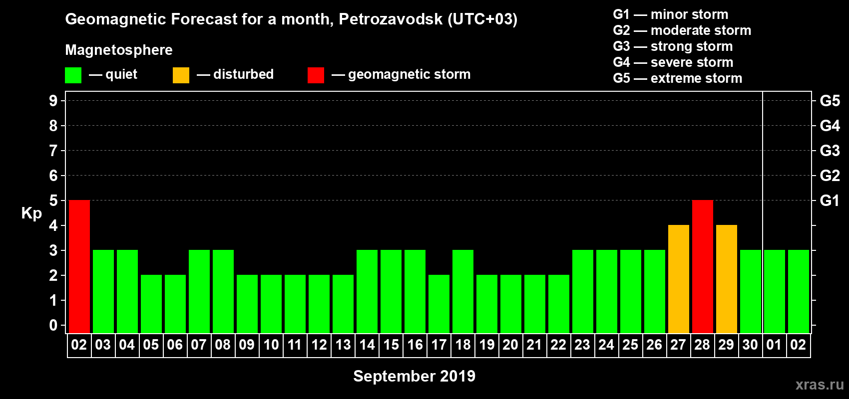 Geomagnetic storm forecast in Petrozavodsk for Sep 02, 2019
