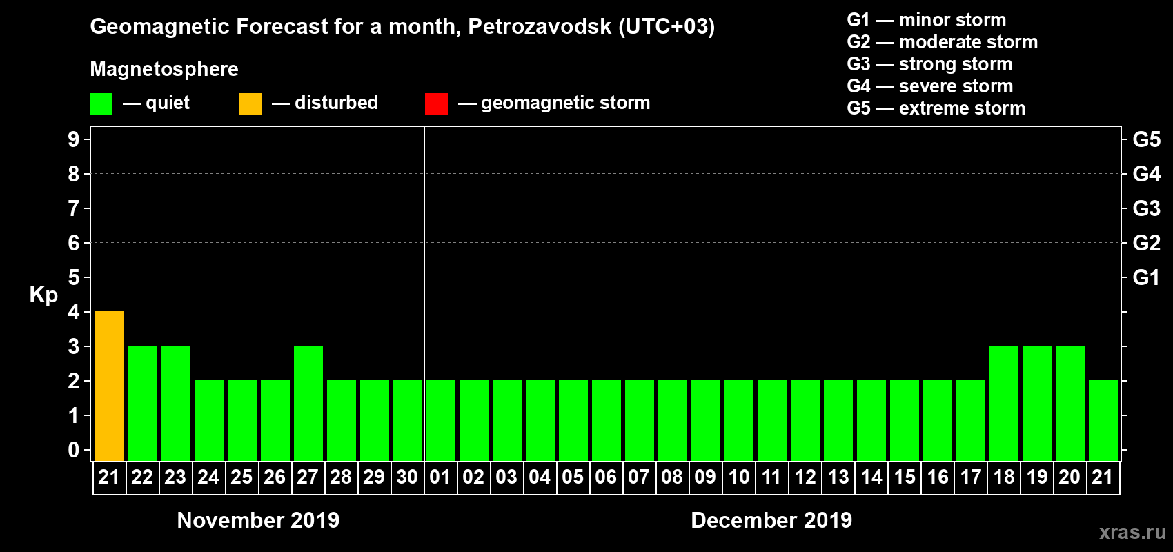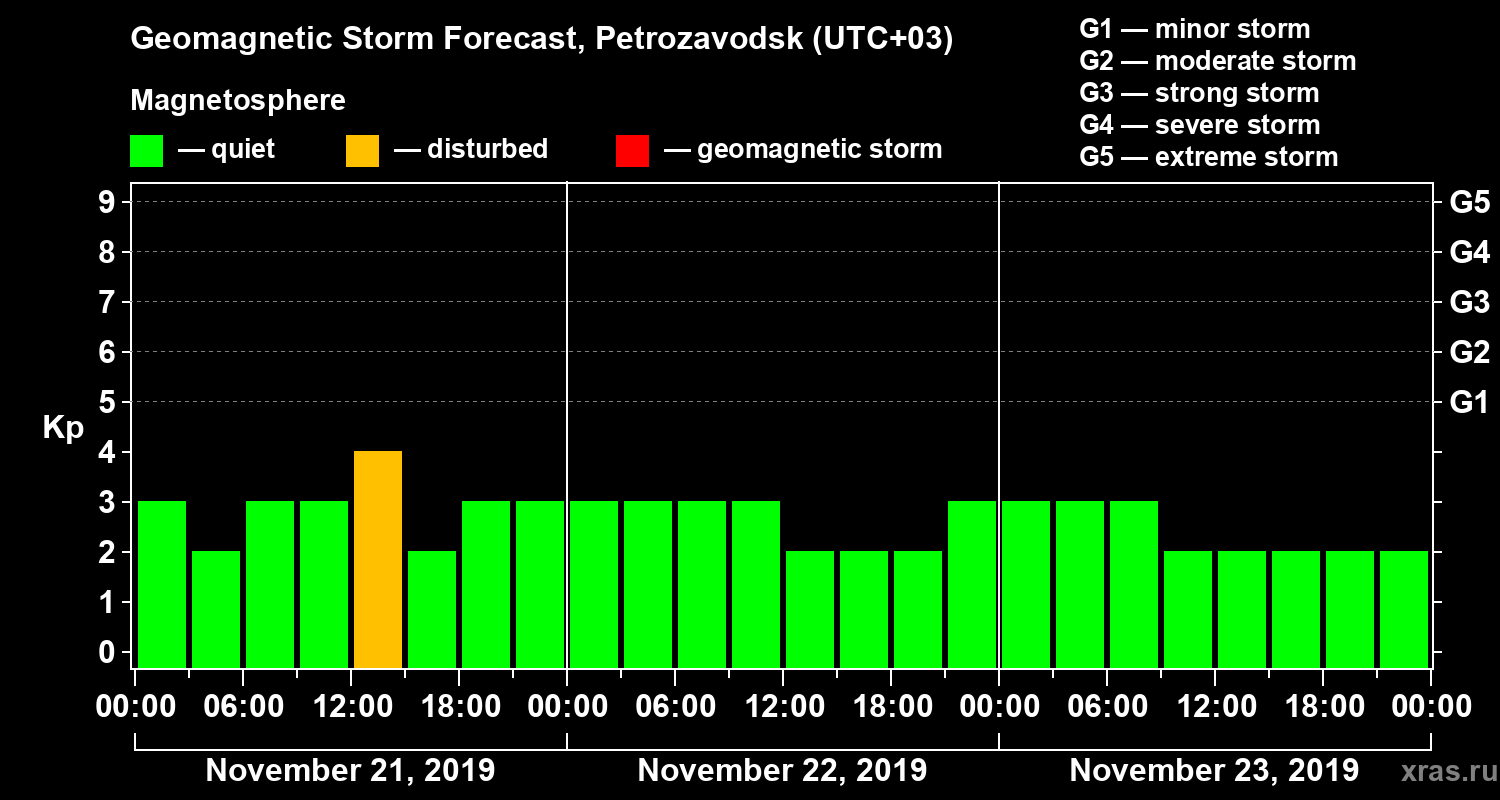 Geomagnetic activity forecast in Petrozavodsk — Nov 21, 2019