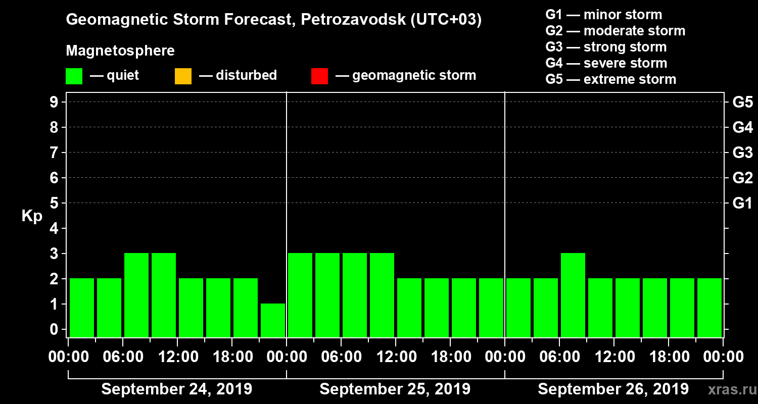 Geomagnetic storm forecast in Petrozavodsk for Sep 24, 2019