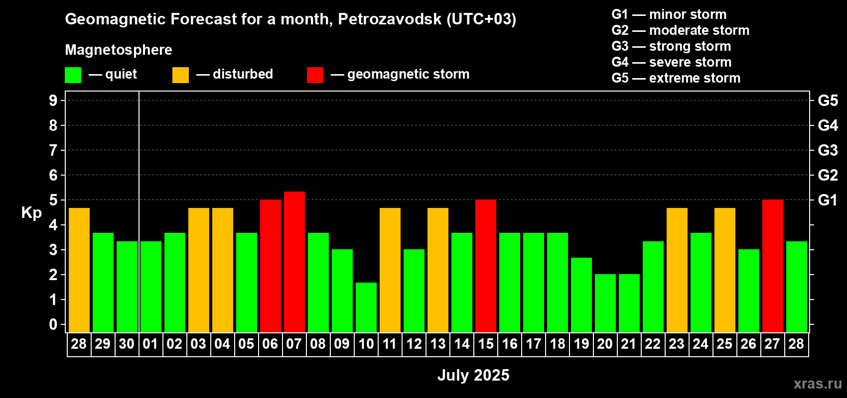 Geomagnetic storm forecast in Petrozavodsk for Jun 28, 2025