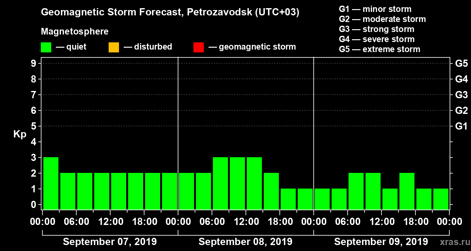 Geomagnetic storm forecast in Petrozavodsk for Sep 07, 2019