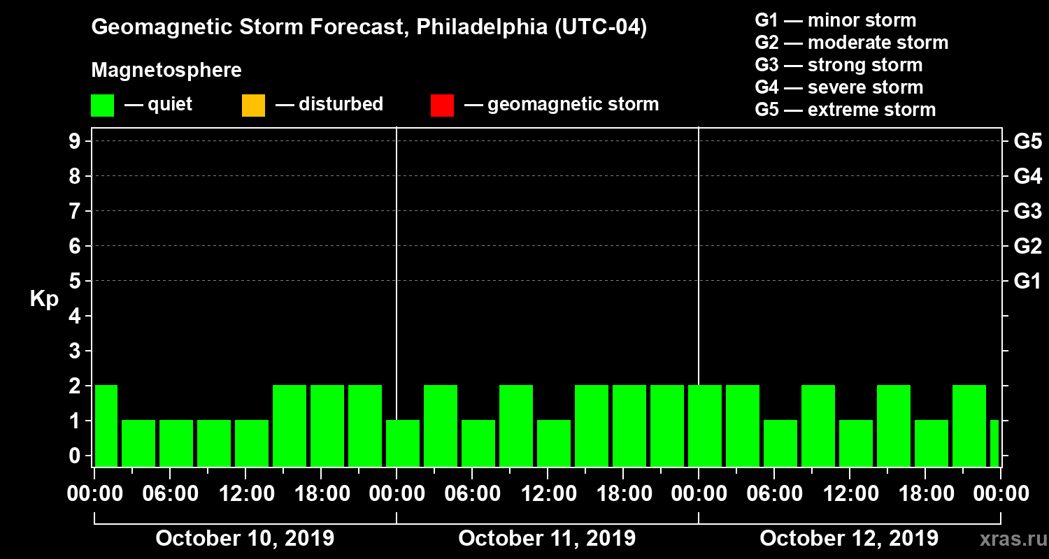 Geomagnetic storm forecast in Philadelphia for Oct 10, 2019