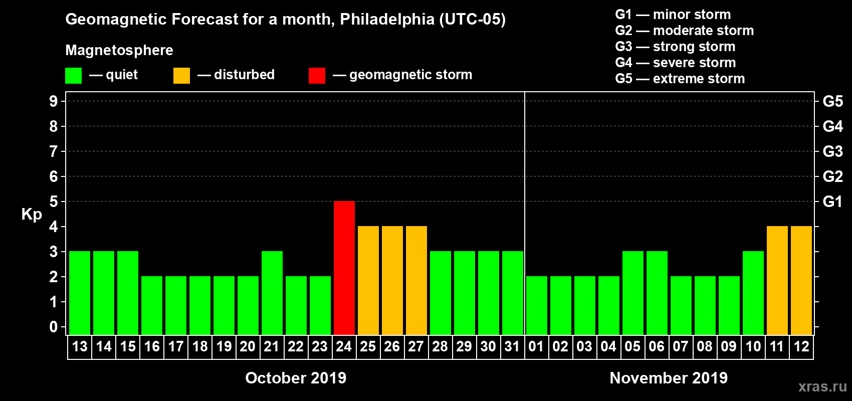 Geomagnetic storm forecast in Philadelphia for Oct 13, 2019
