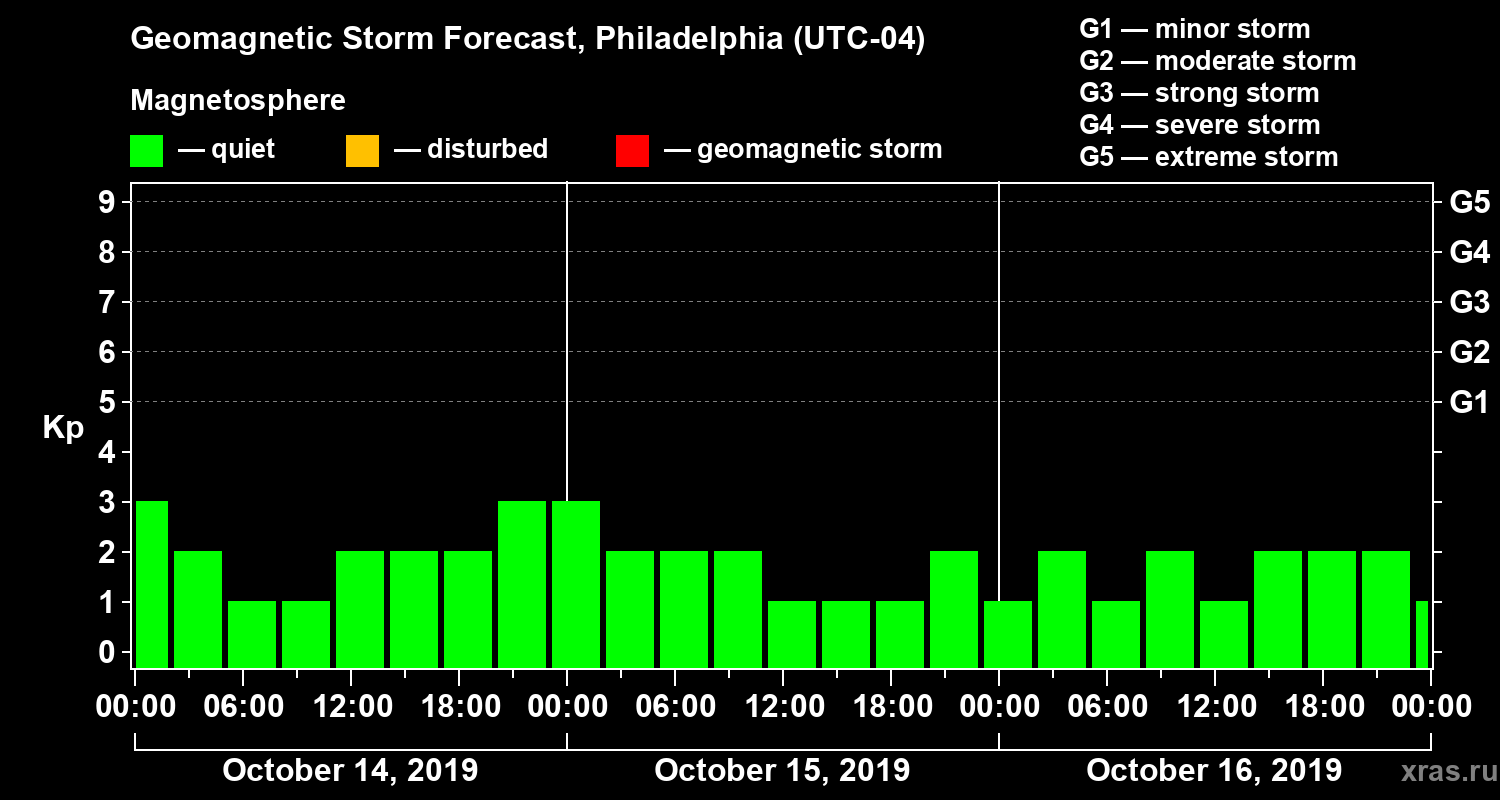 Geomagnetic storm forecast in Philadelphia for Oct 14, 2019