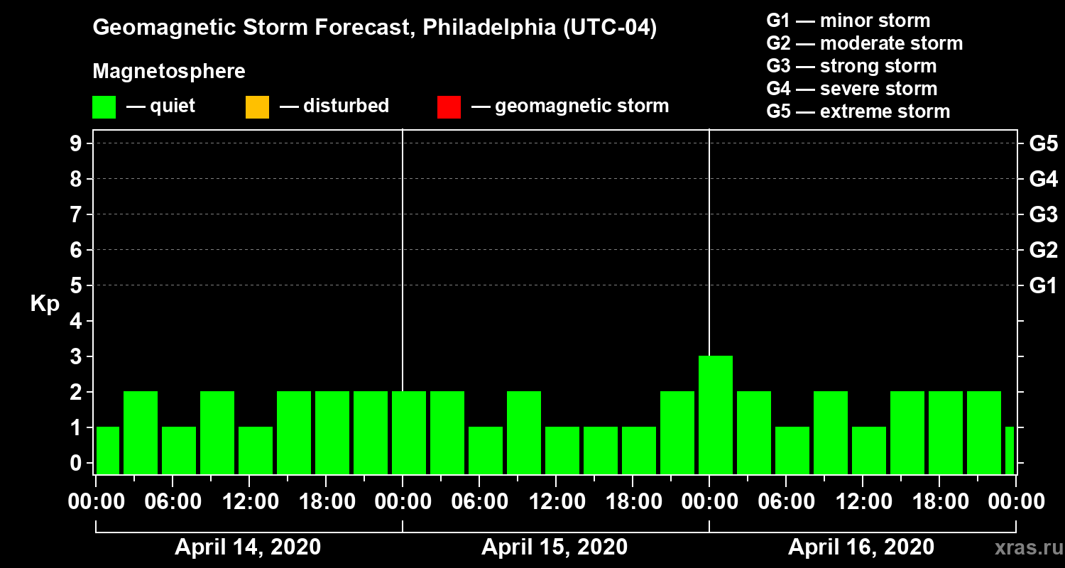 Geomagnetic storm forecast in Philadelphia for Apr 14, 2020