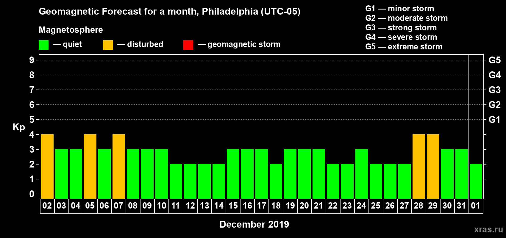 Geomagnetic storm forecast in Philadelphia for Dec 02, 2018