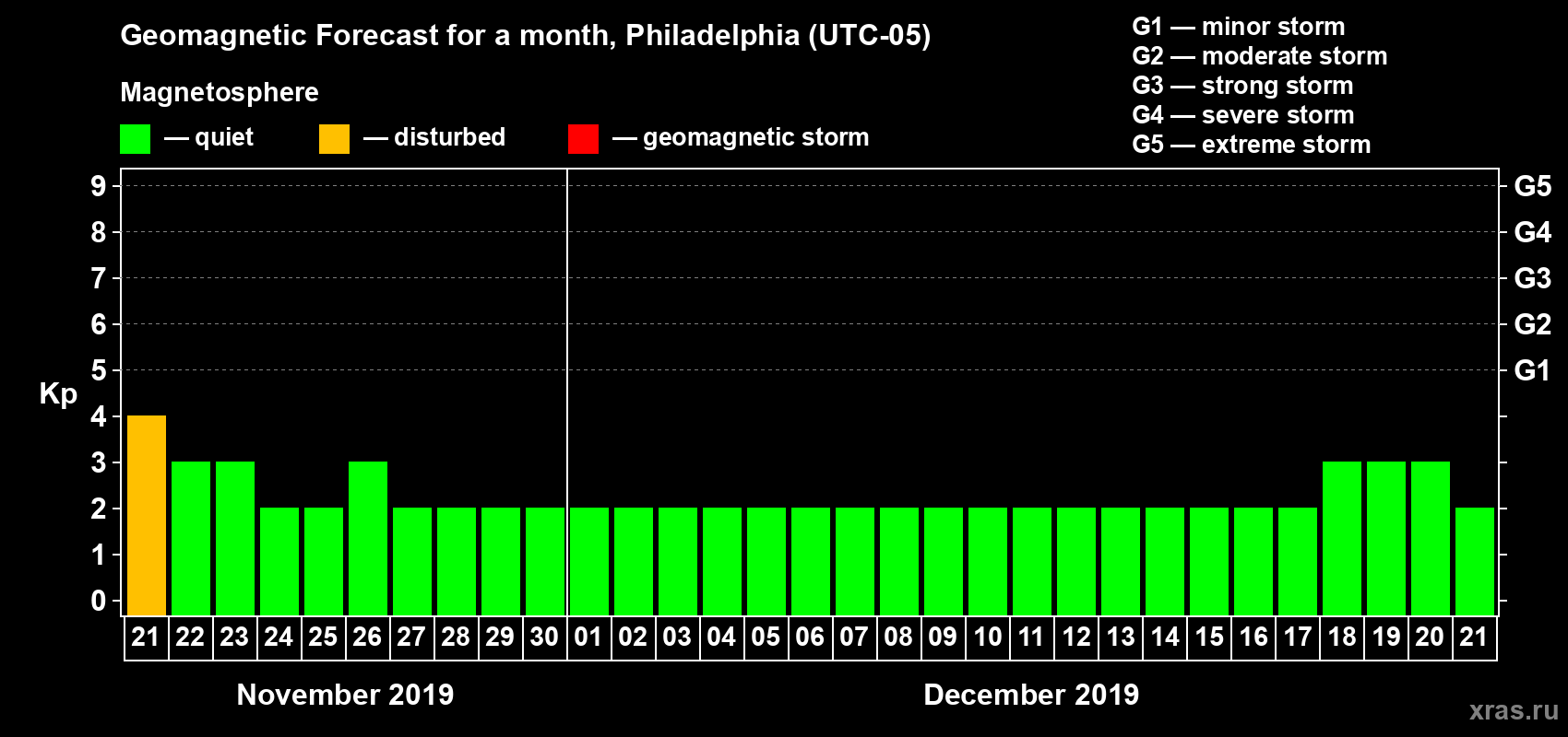 Geomagnetic storm forecast in Philadelphia for Nov 21, 2019
