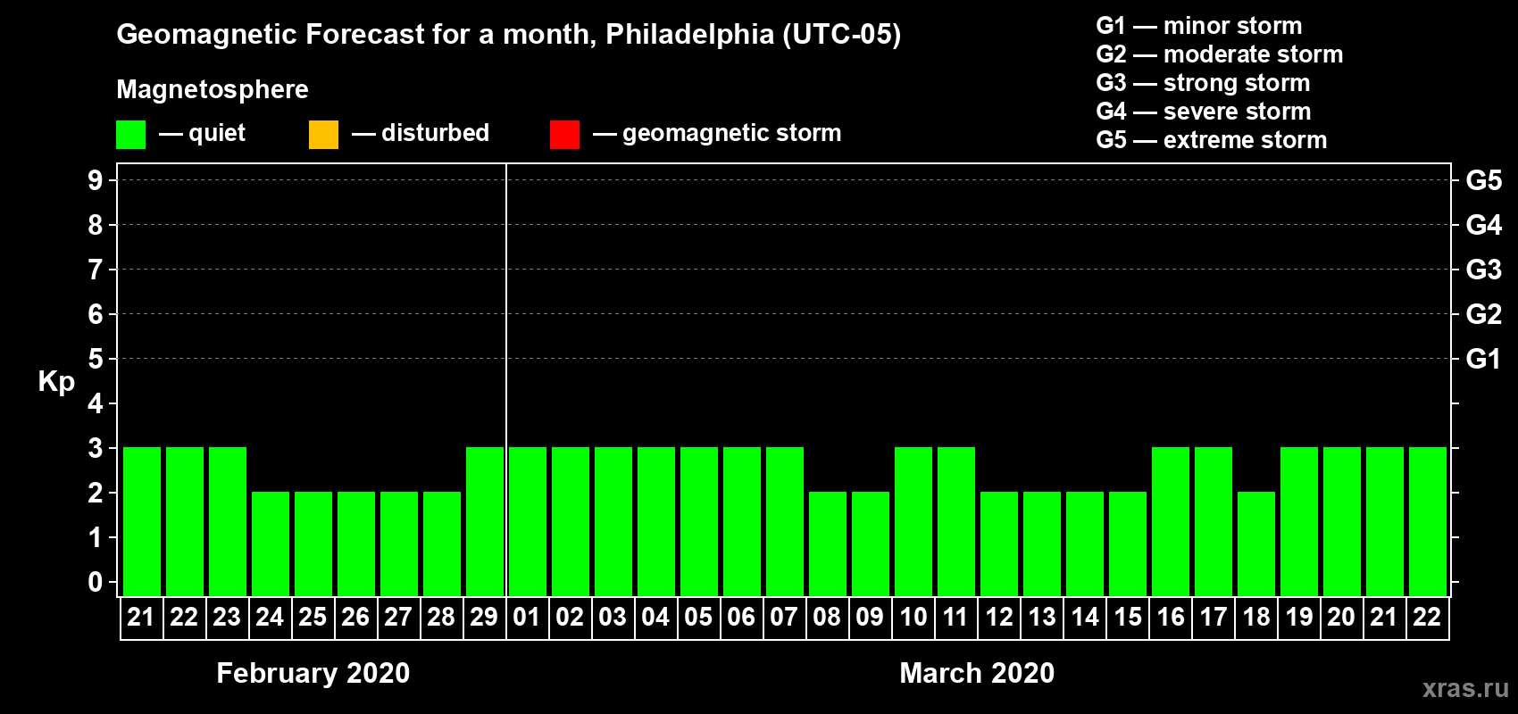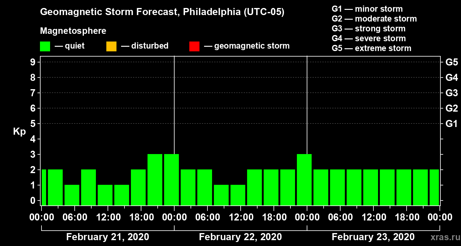 Geomagnetic storm forecast in Philadelphia for Feb 21, 2020