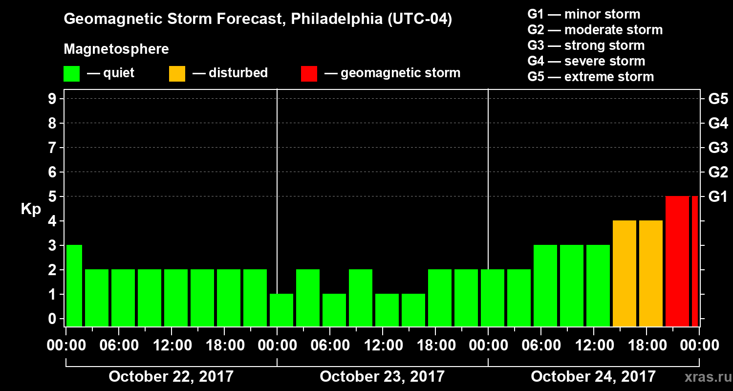 Geomagnetic storm forecast in Philadelphia for Oct 22, 2017