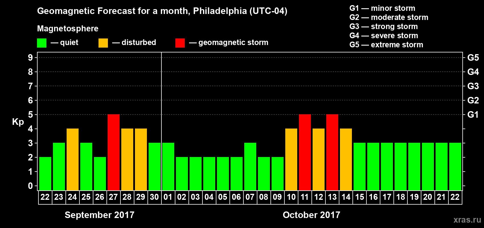 Geomagnetic storm forecast in Philadelphia for Sep 22, 2017