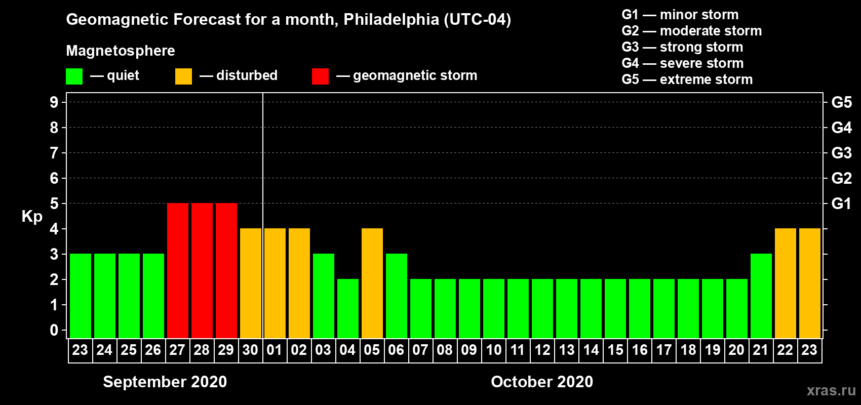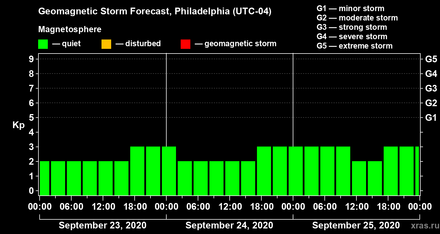Geomagnetic storm forecast in Philadelphia for Sep 23, 2020