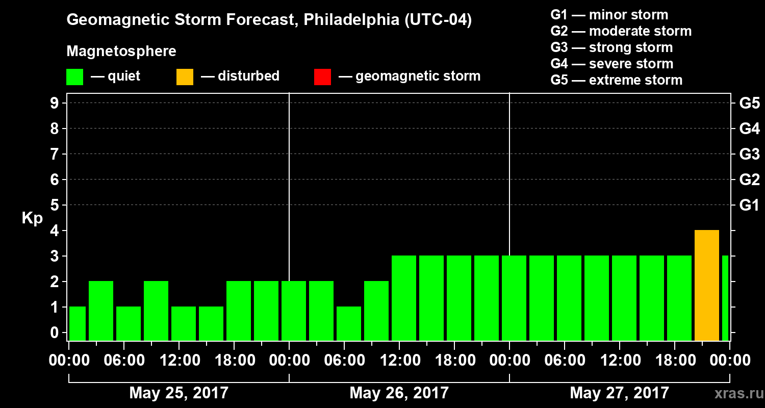 Geomagnetic storm forecast in Philadelphia for May 25, 2017