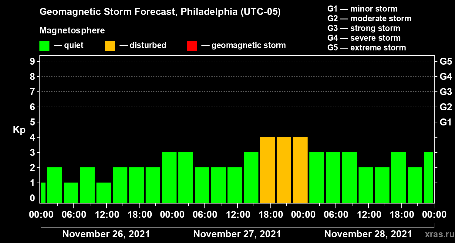 Geomagnetic activity forecast in Philadelphia — Nov 26, 2021