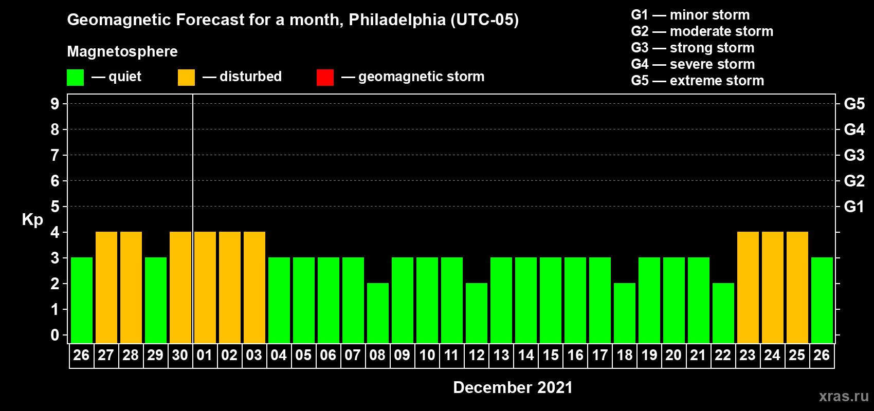 Geomagnetic storm forecast in Philadelphia for Nov 26, 2021