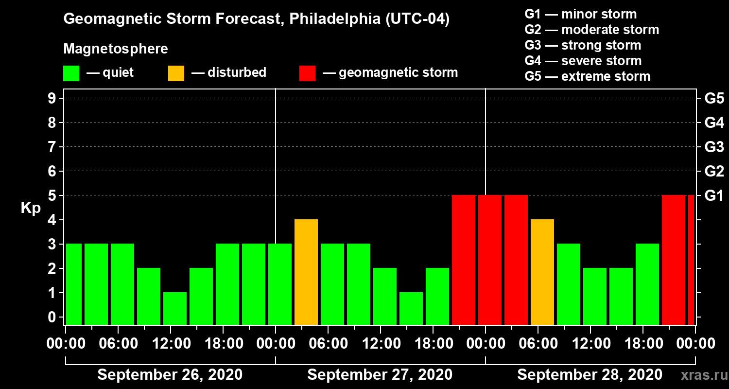 Geomagnetic storm forecast in Philadelphia for Sep 26, 2020