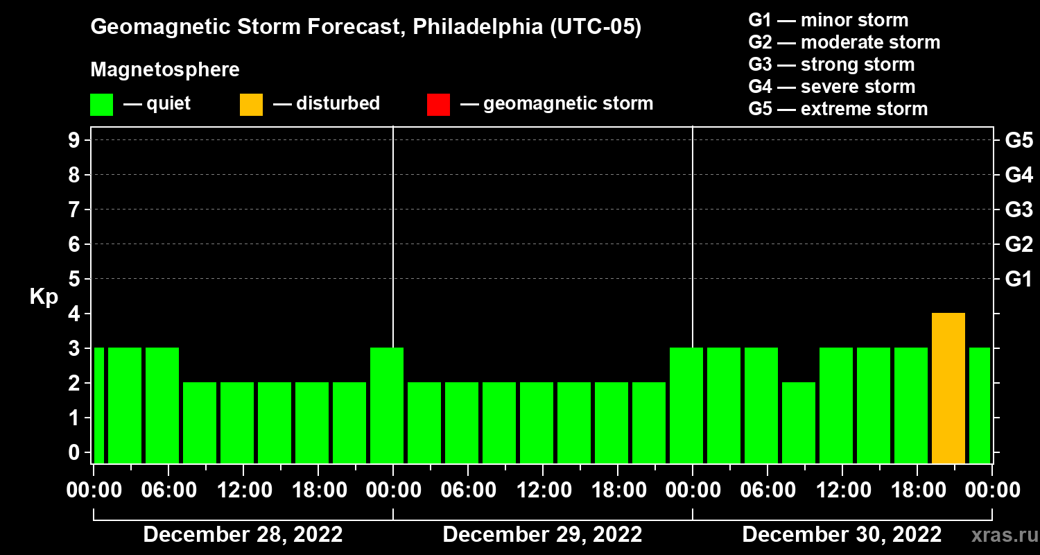 Geomagnetic activity forecast in Philadelphia — Dec 28, 2022