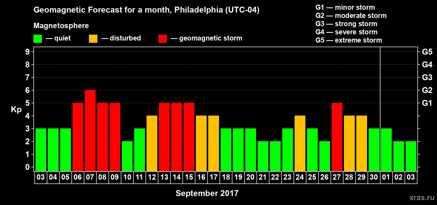 Geomagnetic storm forecast in Philadelphia for Sep 03, 2017