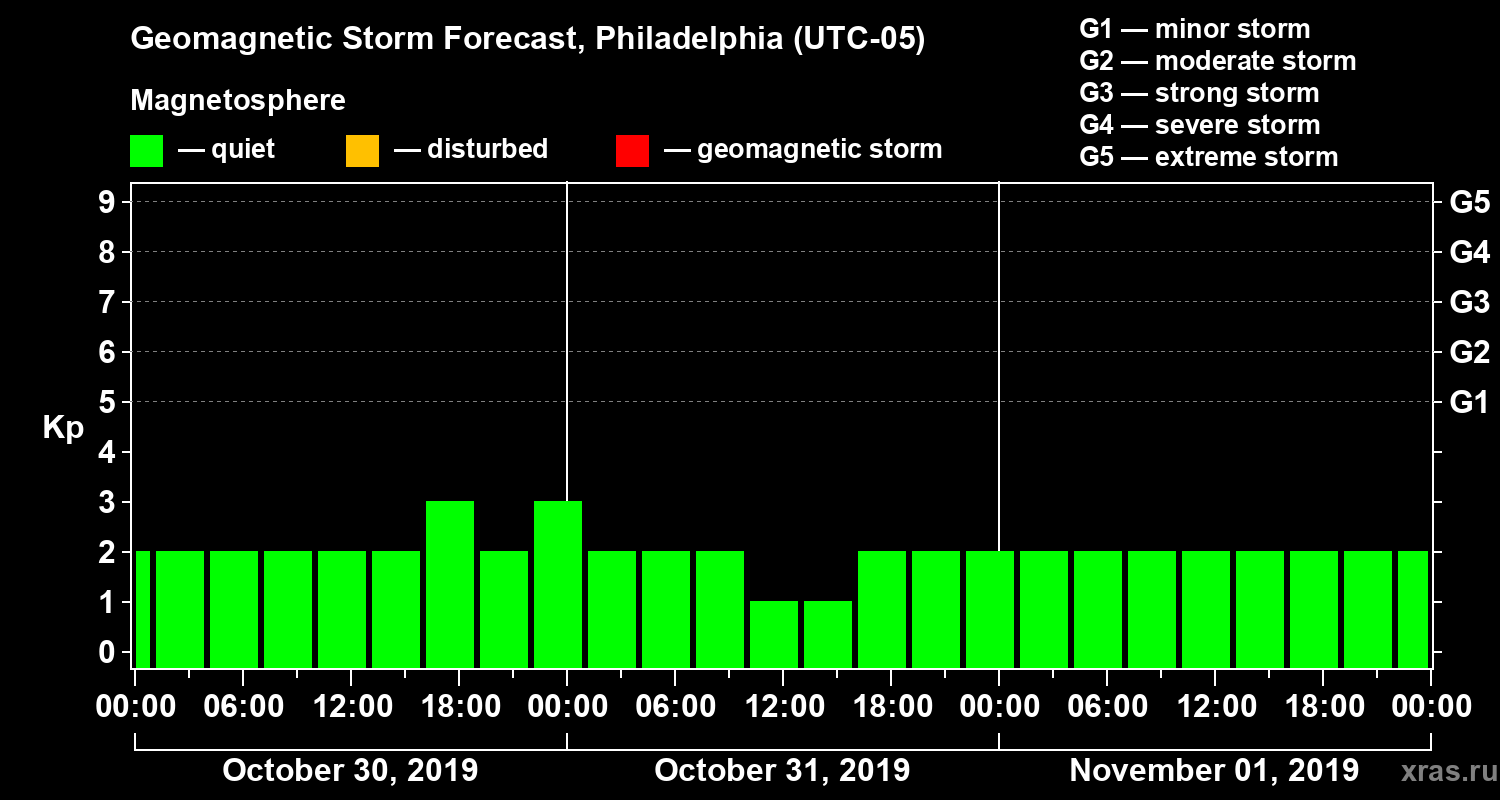 Geomagnetic storm forecast in Philadelphia for Oct 30, 2019