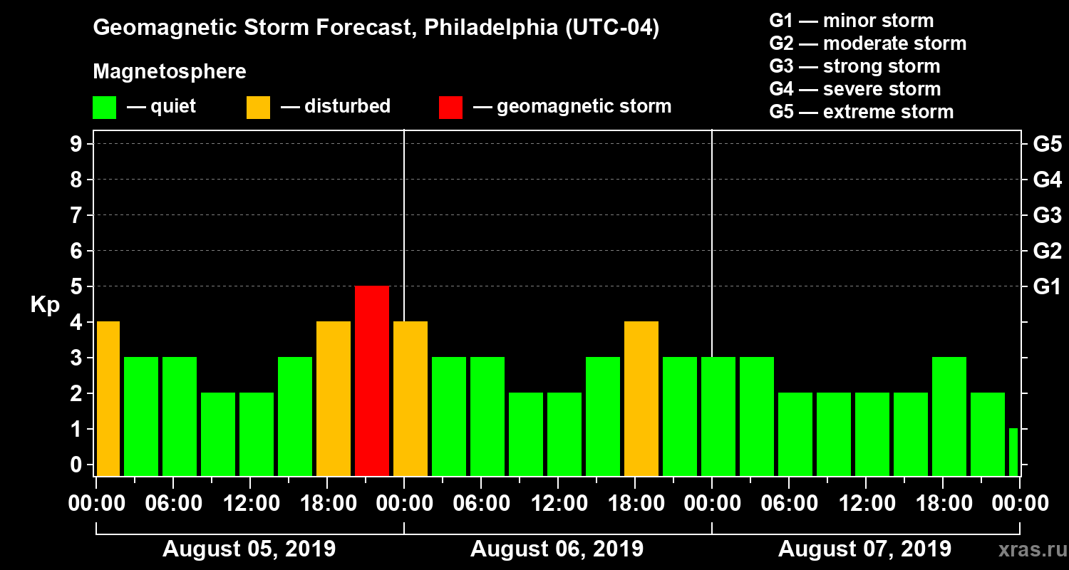 Geomagnetic storm forecast in Philadelphia for Aug 05, 2019