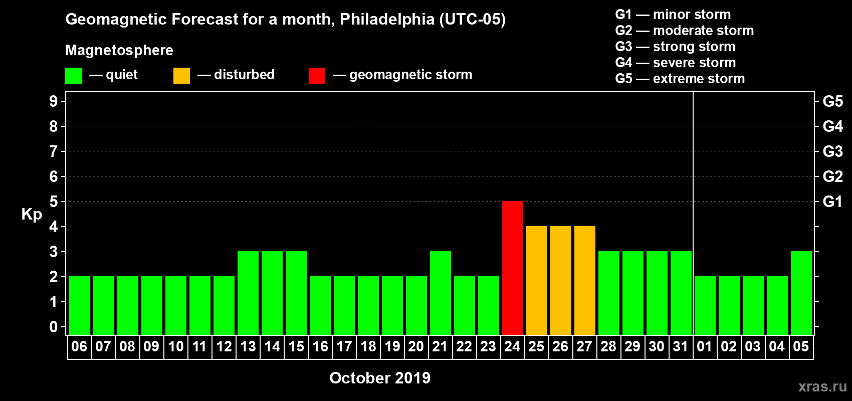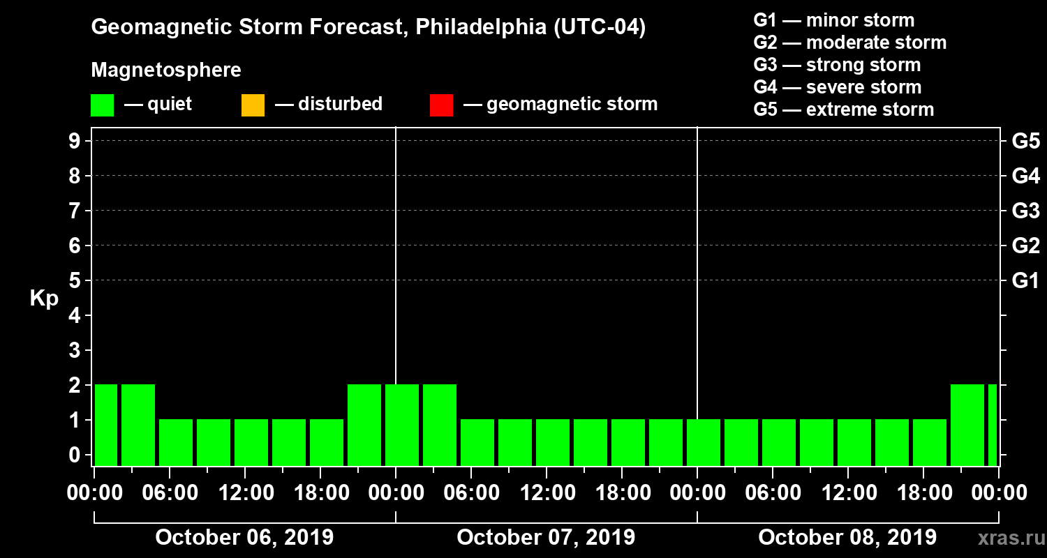 Geomagnetic storm forecast in Philadelphia for Oct 06, 2019