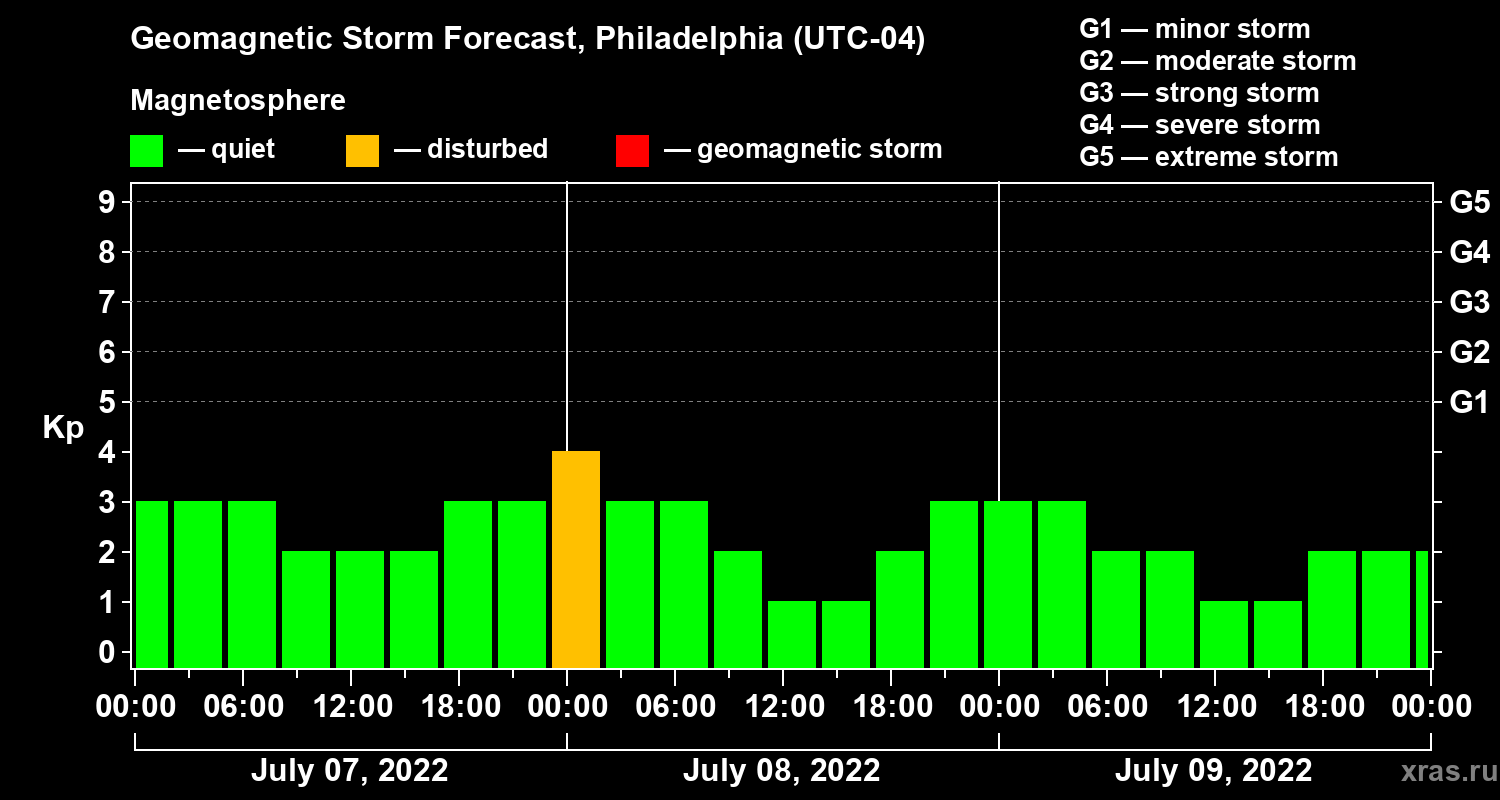 Geomagnetic storm forecast in Philadelphia for Jul 07, 2022
