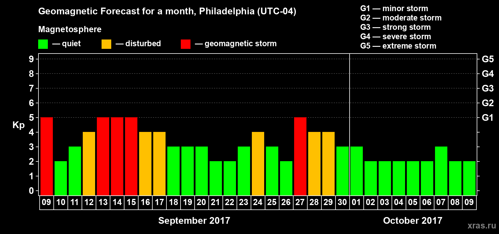 Geomagnetic storm forecast in Philadelphia for Sep 09, 2017