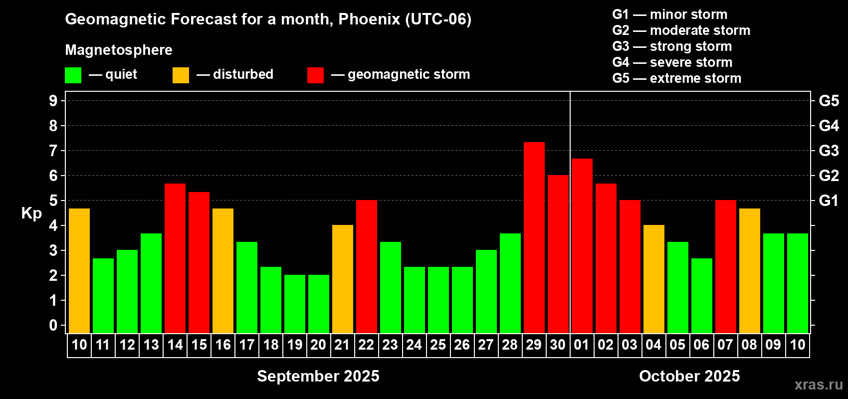 Geomagnetic storm forecast in Phoenix for Sep 10, 2025
