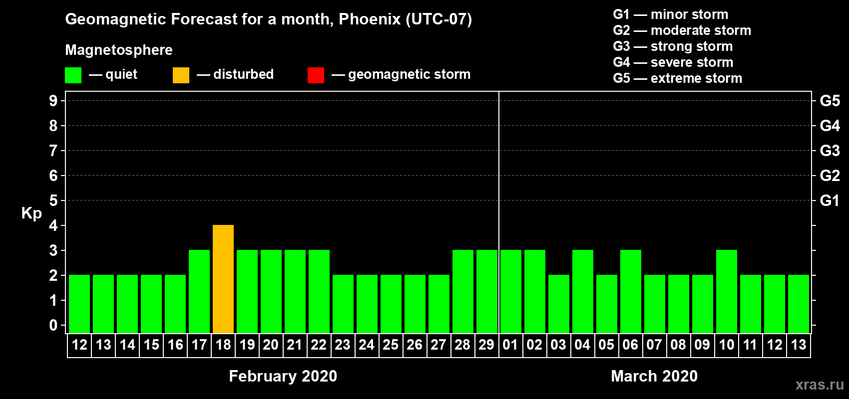 Geomagnetic storm forecast in Phoenix for Feb 12, 2020