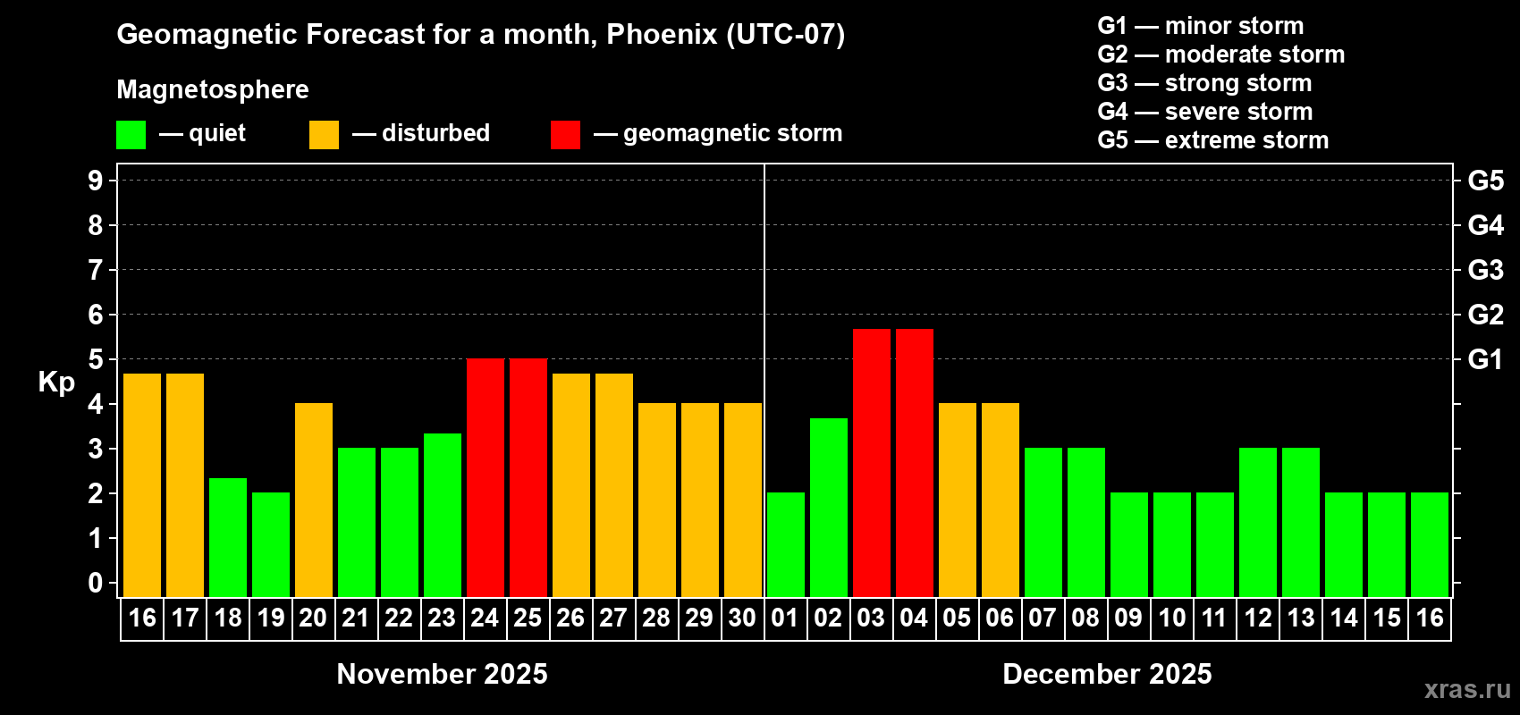 Geomagnetic storm forecast in Phoenix for Nov 16, 2025