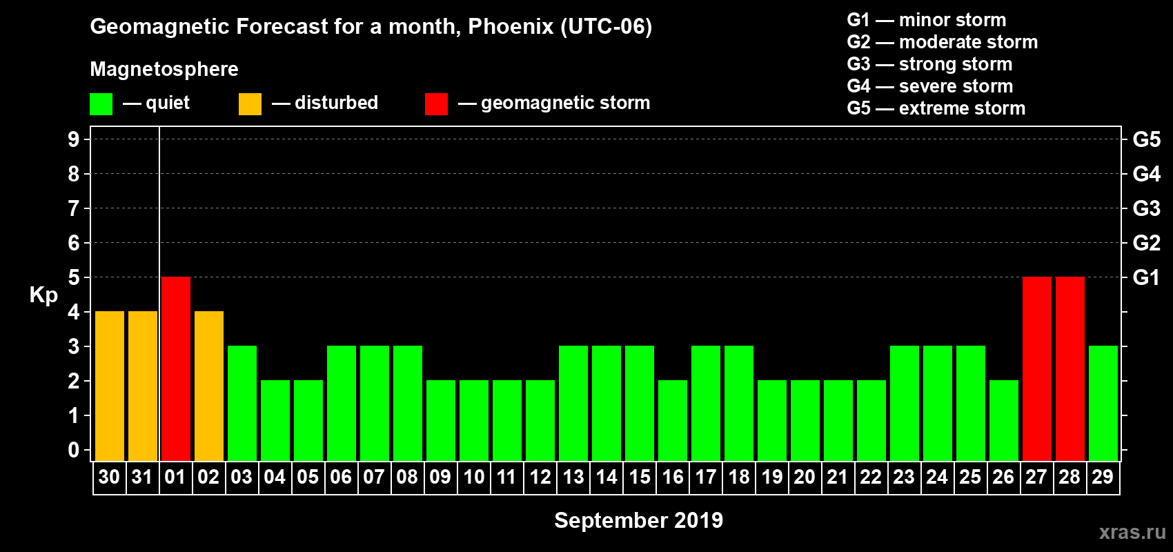 Geomagnetic storm forecast in Phoenix for Aug 30, 2019