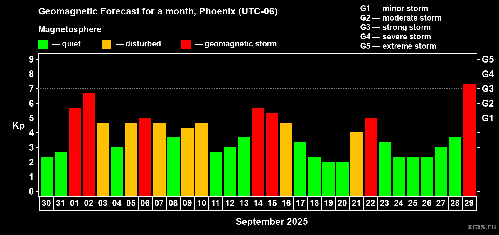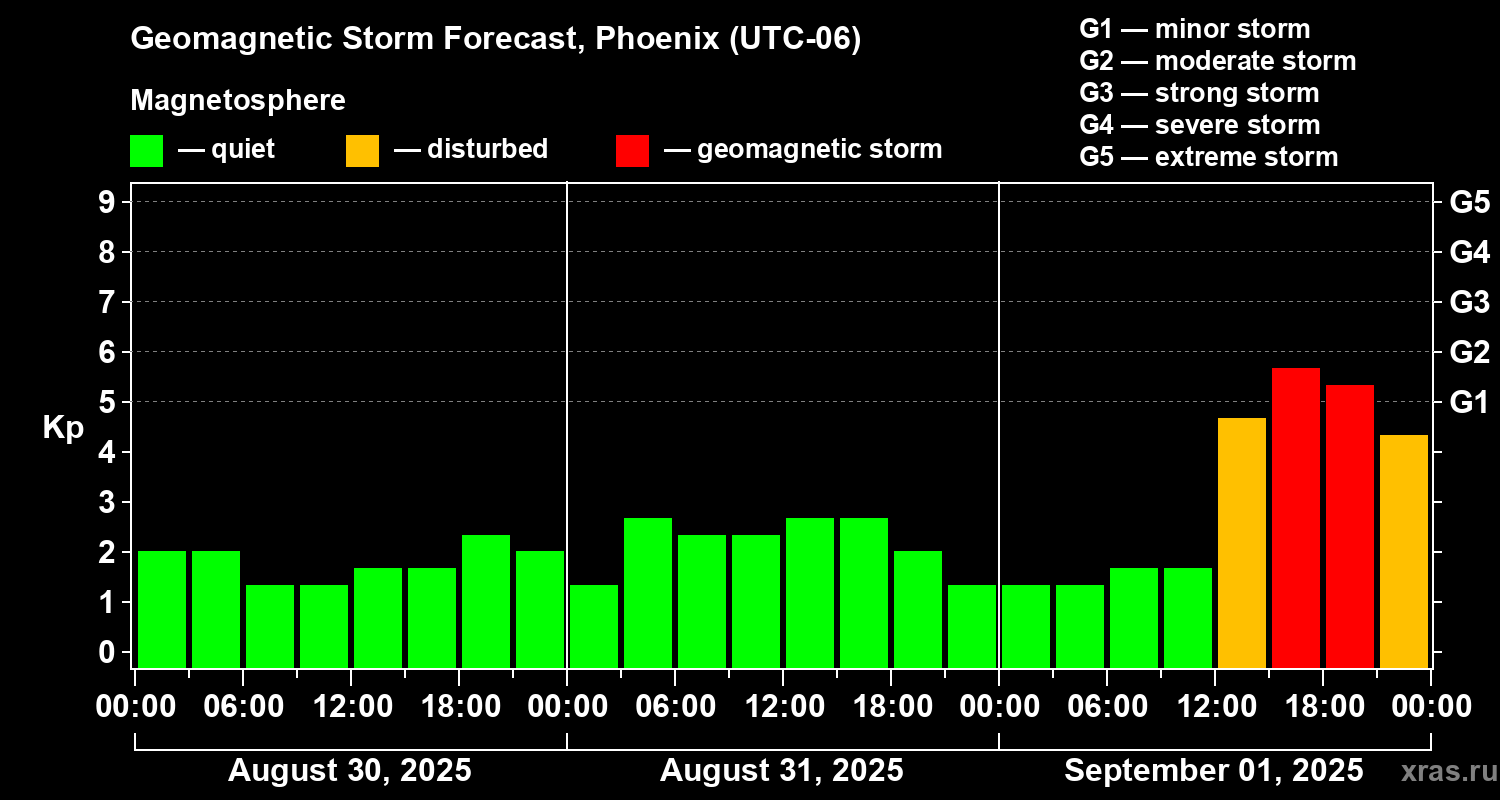 Geomagnetic storm forecast in Phoenix for Aug 30, 2025