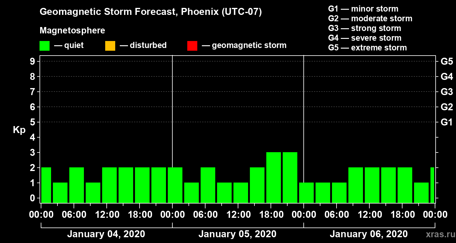 Geomagnetic storm forecast in Phoenix for Jan 04, 2020