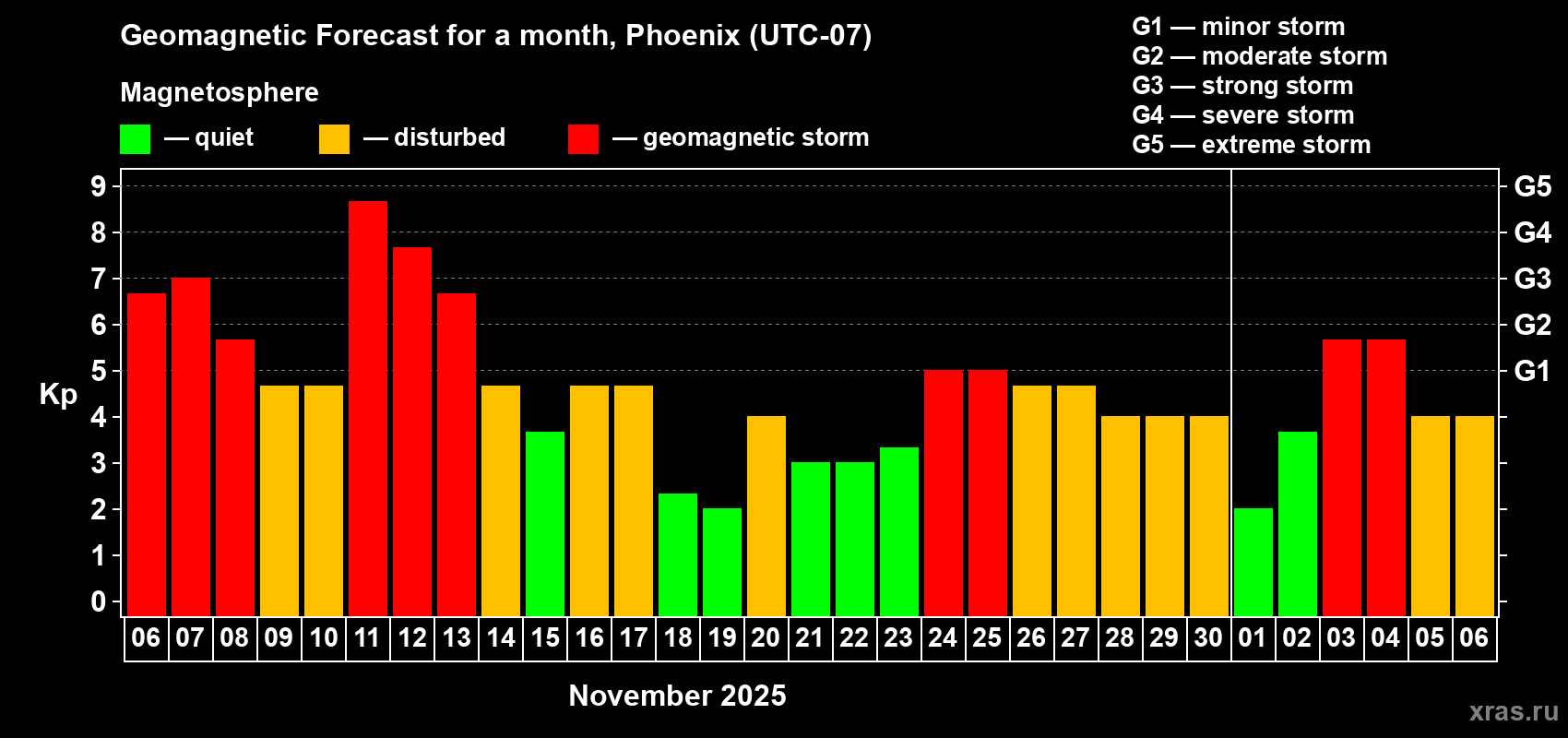 Geomagnetic storm forecast in Phoenix for Nov 06, 2025