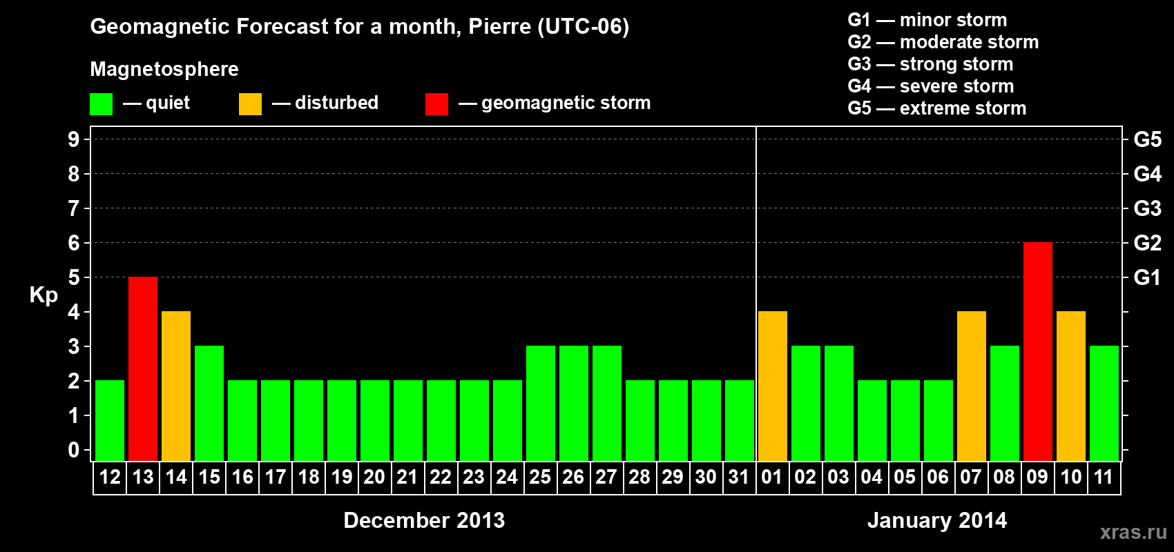 Geomagnetic storm forecast in Pierre for Dec 12, 2013