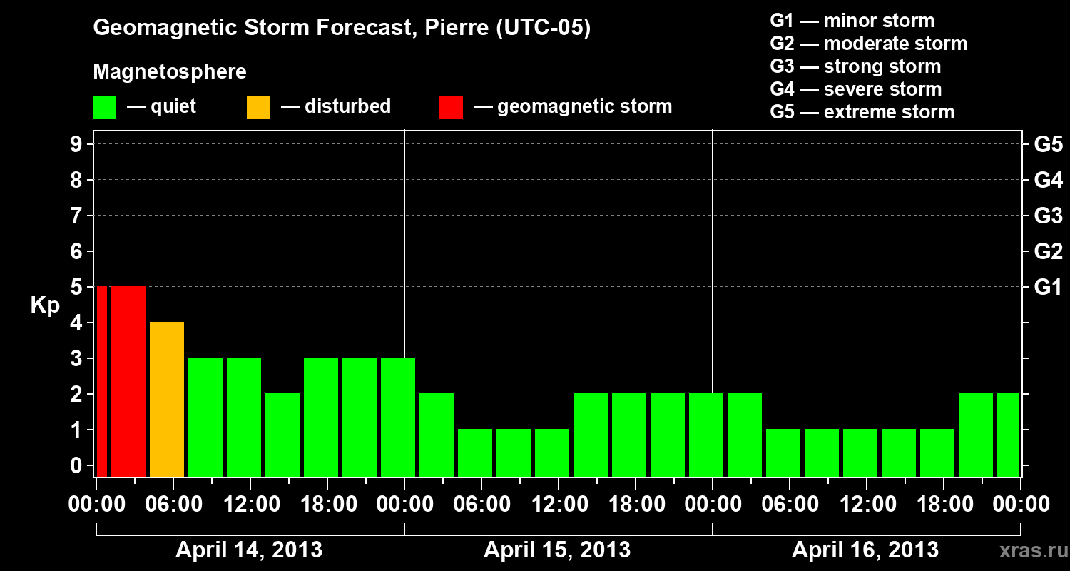 Geomagnetic storm forecast in Pierre for Apr 14, 2013