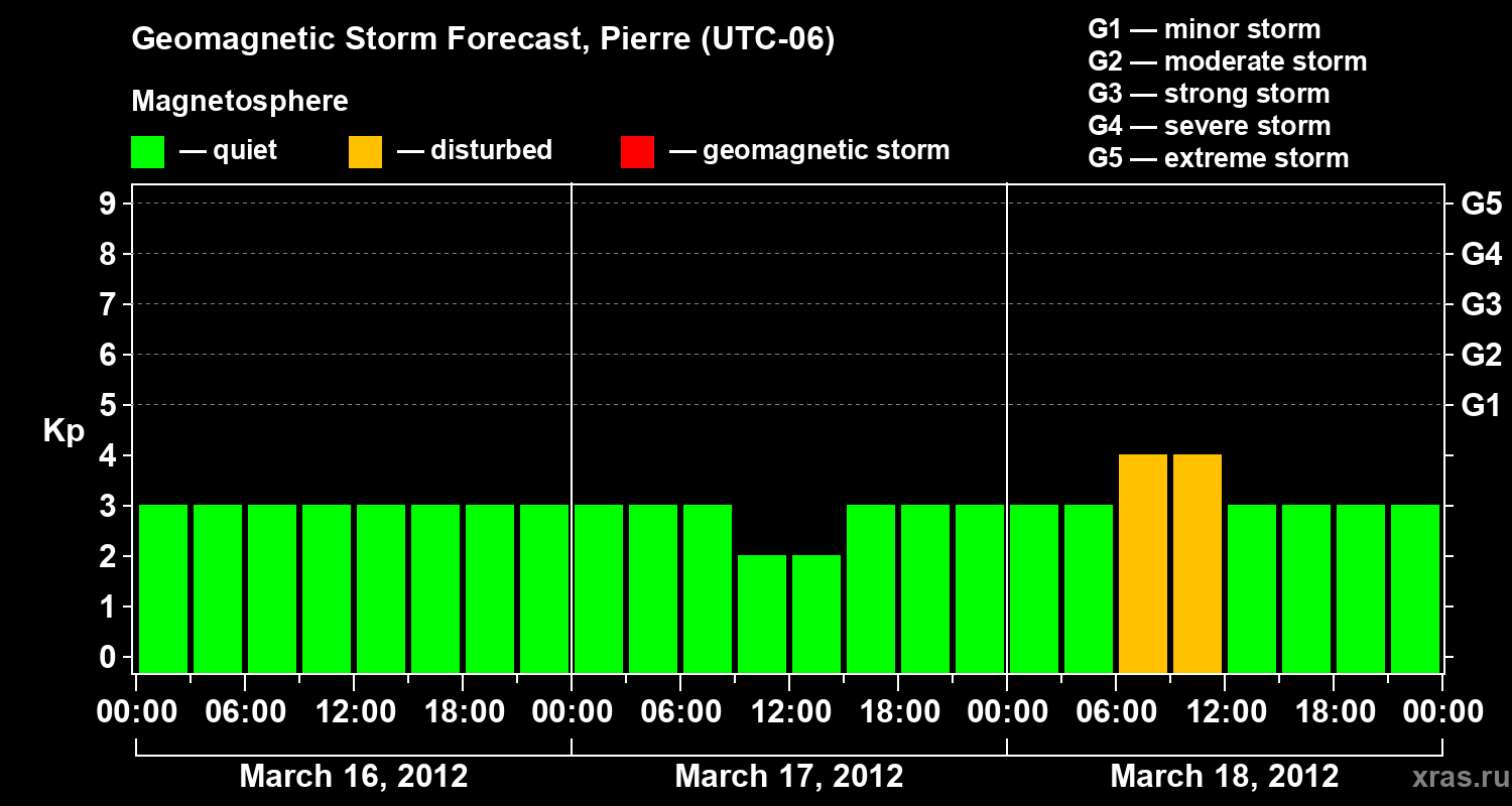 Geomagnetic storm forecast in Pierre for Mar 16, 2012
