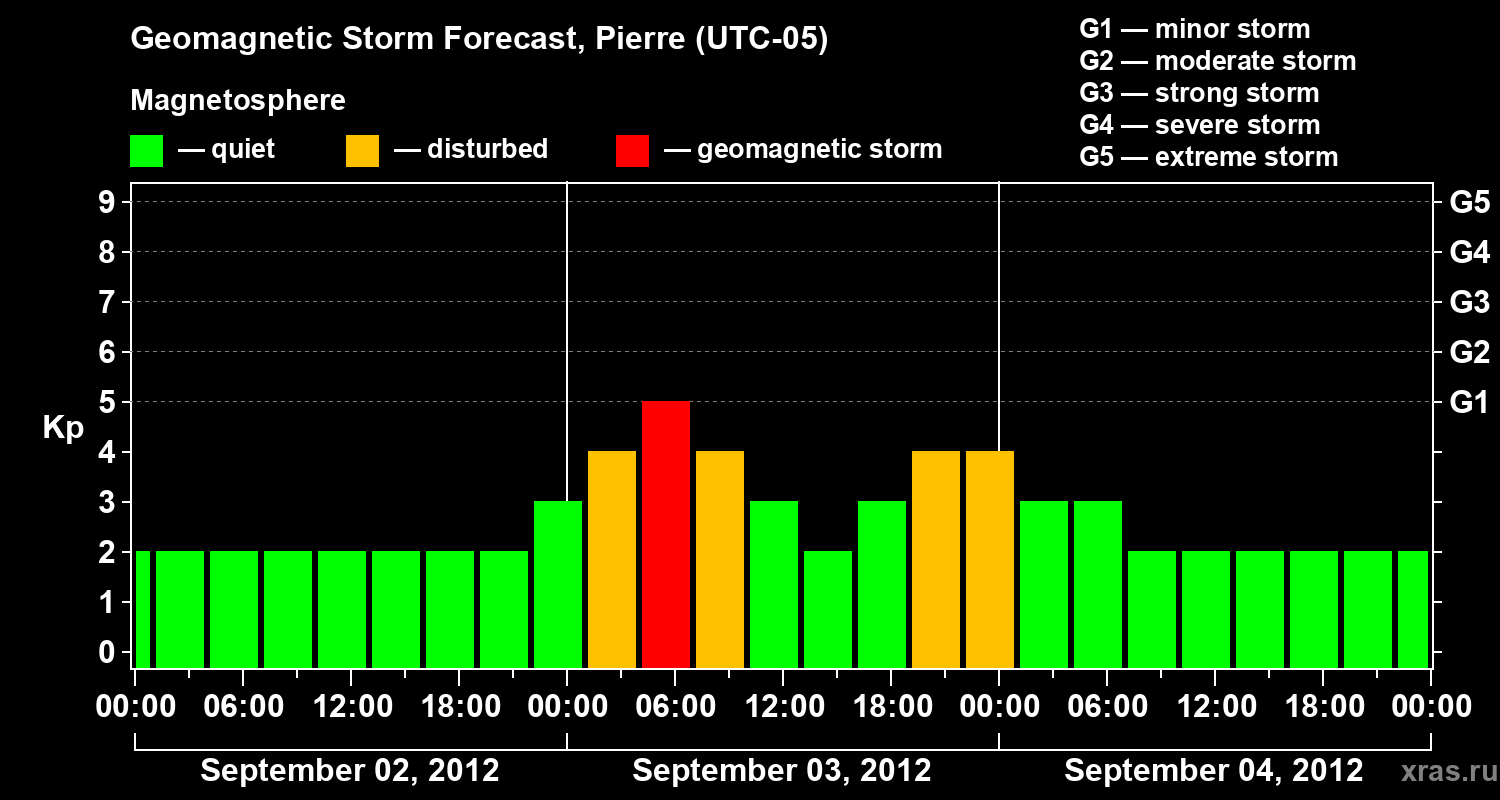 Geomagnetic storm forecast in Pierre for Sep 02, 2012