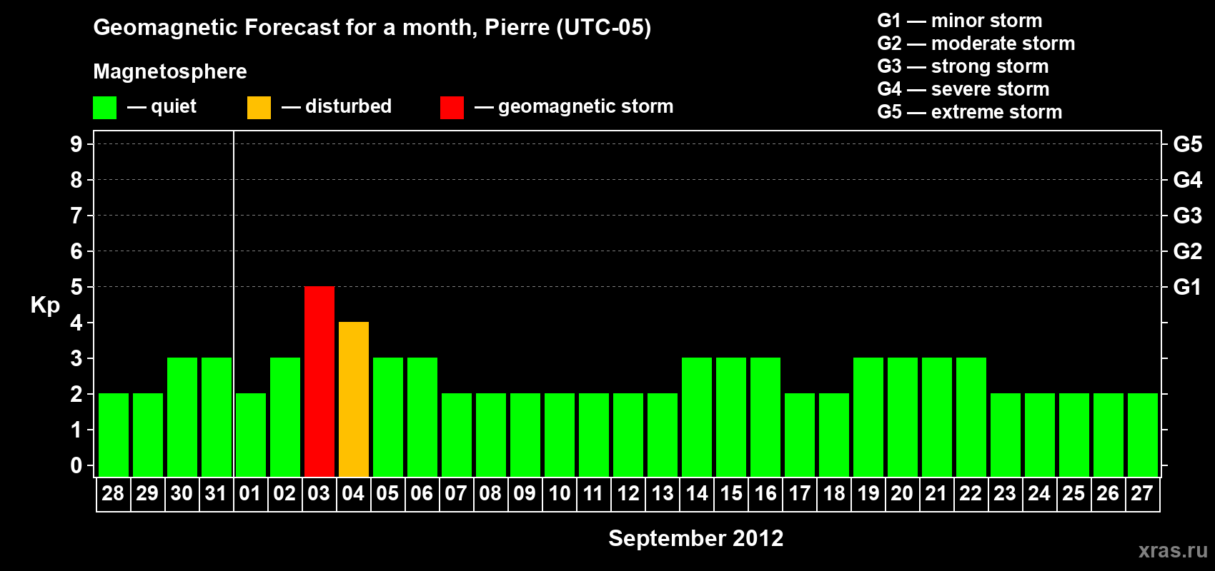 Geomagnetic storm forecast in Pierre for Aug 28, 2012