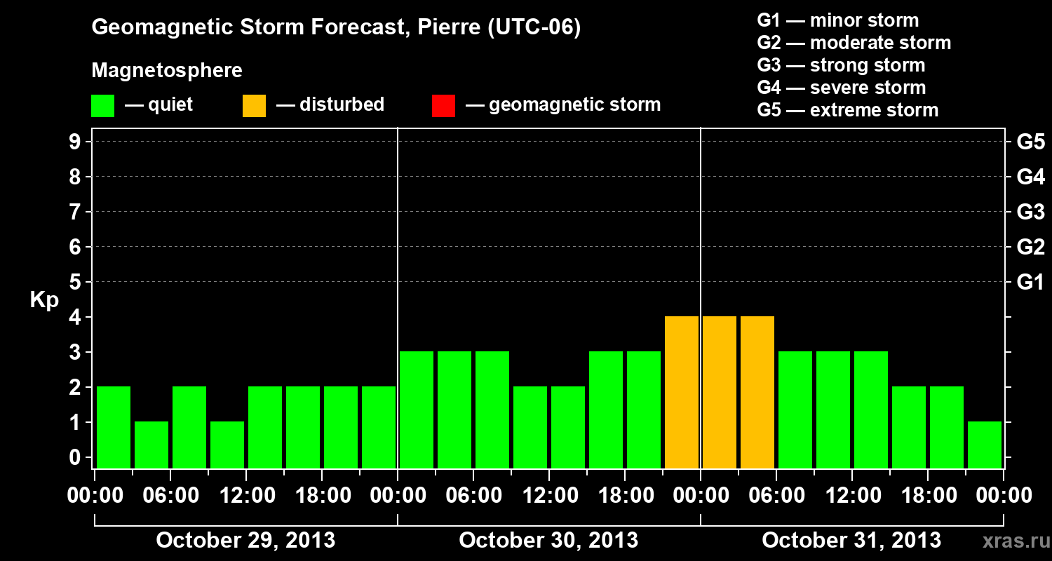 Geomagnetic storm forecast in Pierre for Oct 29, 2013