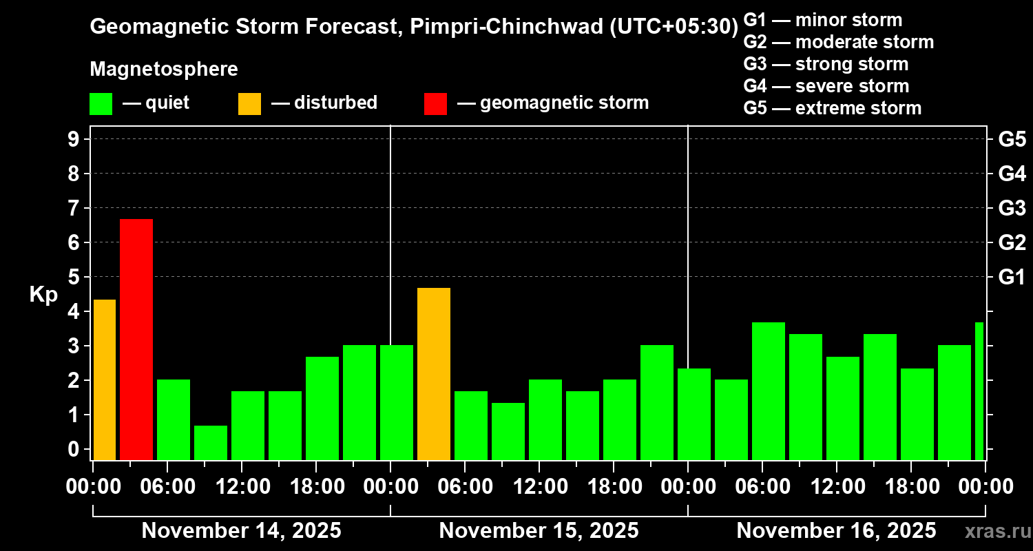 Geomagnetic storm forecast in Pimpri-Chinchwad for Nov 14, 2025