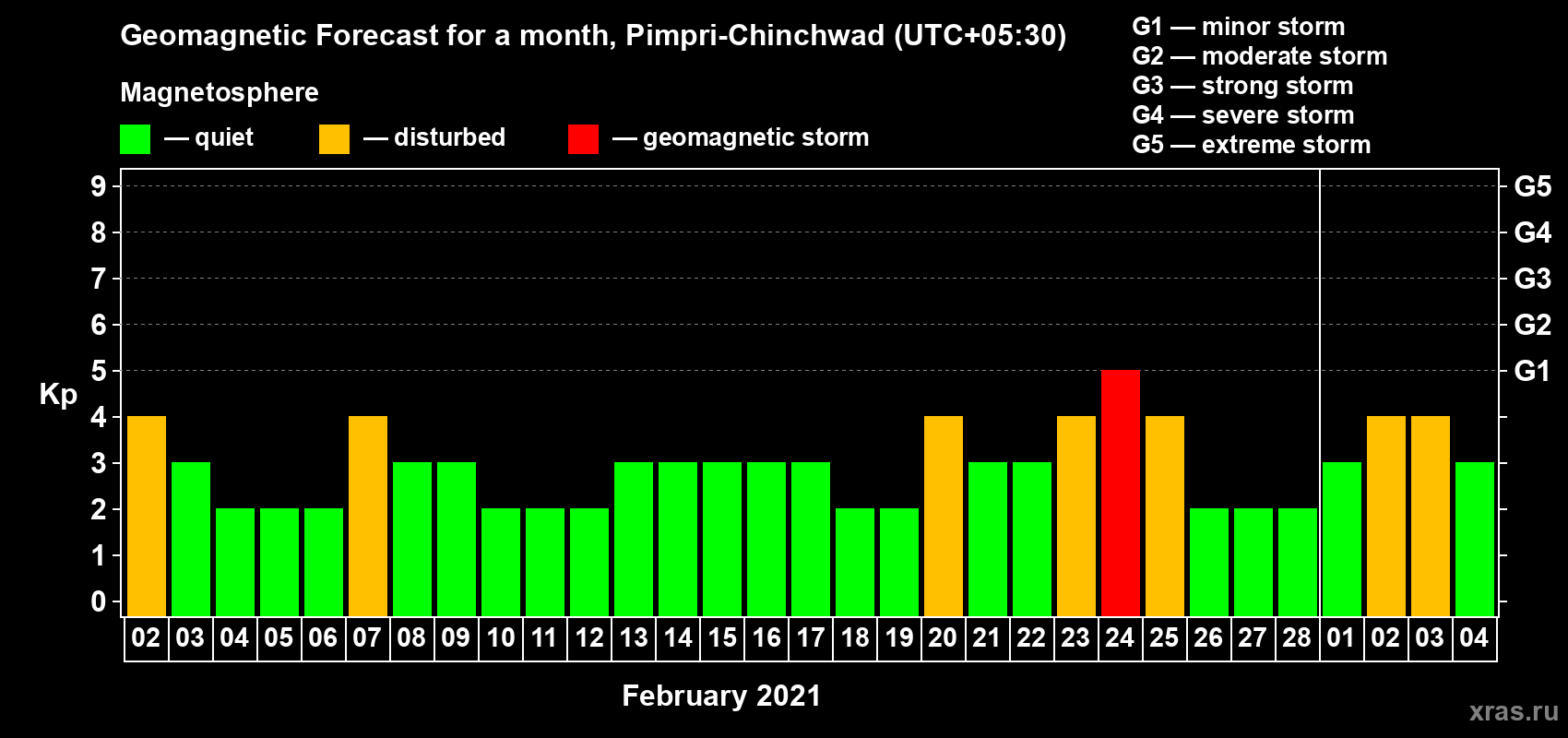 Geomagnetic storm forecast in Pimpri-Chinchwad for Feb 02, 2021