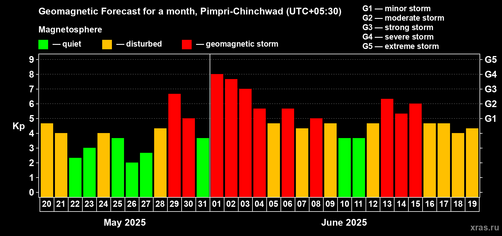 Geomagnetic storm forecast in Pimpri-Chinchwad for May 20, 2025