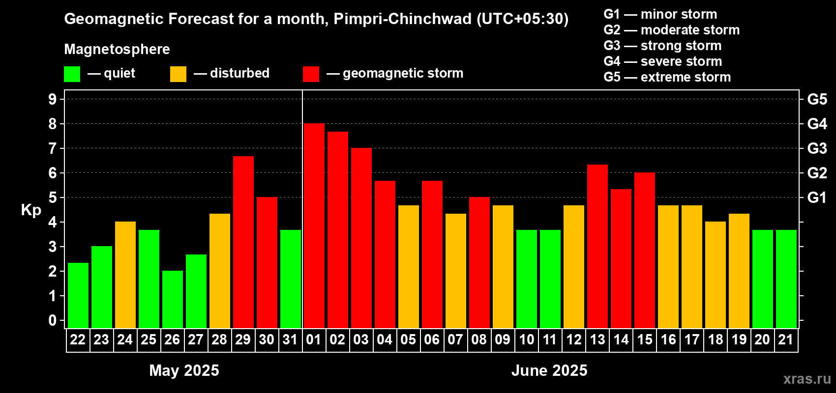 Geomagnetic storm forecast in Pimpri-Chinchwad for May 22, 2025