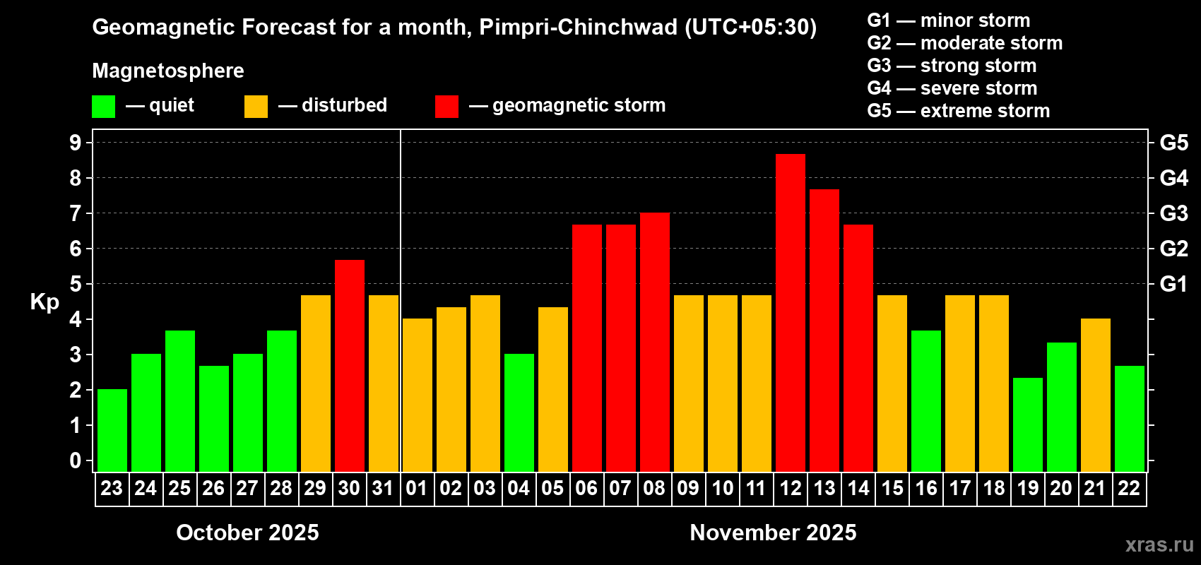 Geomagnetic storm forecast in Pimpri-Chinchwad for Oct 23, 2025