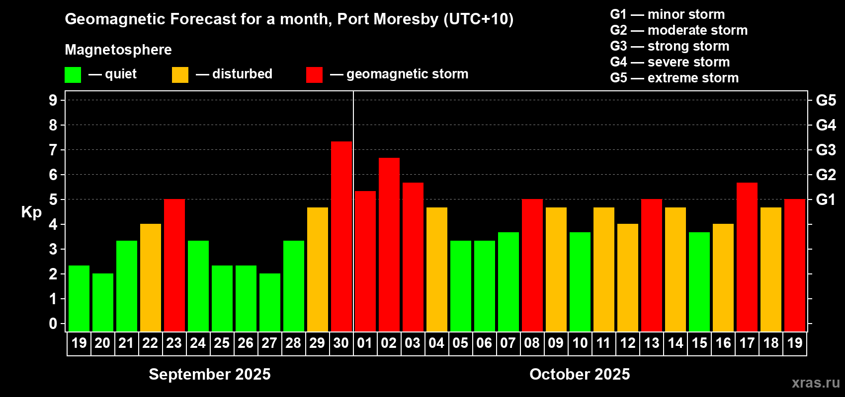 Geomagnetic storm forecast in Port Moresby for Sep 19, 2025