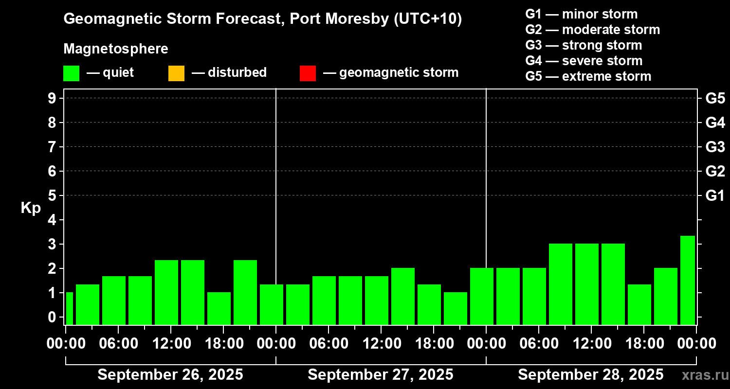 Geomagnetic storm forecast in Port Moresby for Sep 26, 2025