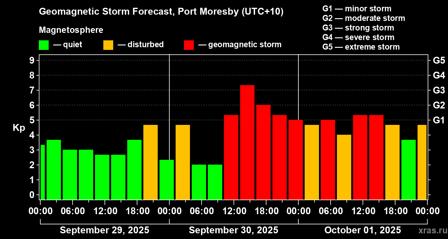 Geomagnetic storm forecast in Port Moresby for Sep 29, 2025